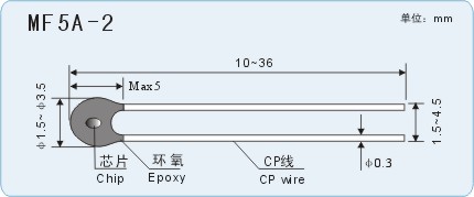 可订制B值:3000-4500K R25℃ 为0.5KΩ-200KΩ之 MF5A-2系列产品 |