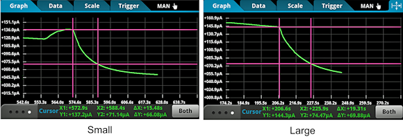 图2:左图是小型热敏电阻的响应; 右图是大型热敏电阻的响应。