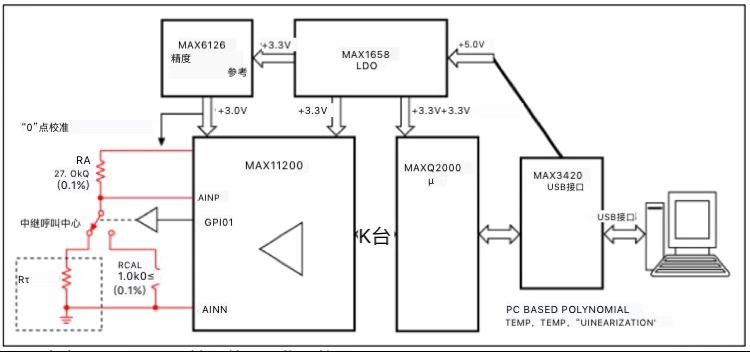 本文中用于测量的精密数据采集系统(DAS)的框图。基于低功能Δ-ΣADC,DAS包含简单校准和计算机生成线性化的功能。
