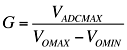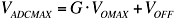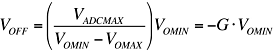 现在将电路的最小和最大电压(分别为V ADCMIN和V ADCMAX)设置为温度限制。使V ADCMIN = 0且V ADCMAX = V MAXADC,这是最大值。使用增益G和偏移电压V OFF的ADC电压,如公式6和7所示: