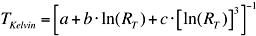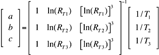 使用公式13,使用所需热敏电阻的电阻与温度表中的三个点来求解SH-H中的系数a,b和c: