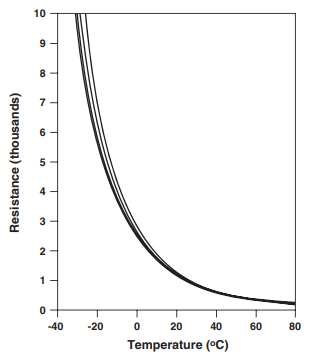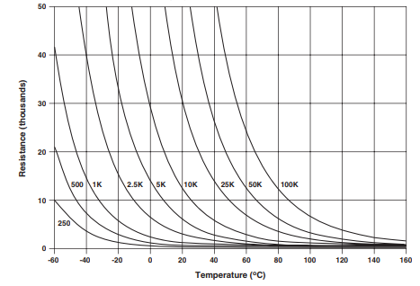 典型的10kΩ热敏电阻,灵敏度会有所不同