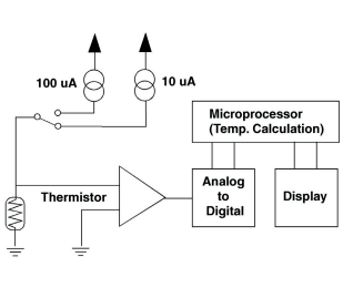 通常,热敏电阻通常是热敏电阻在它们的温度下操作表现出数千欧姆的电阻。在这些高电阻下,简单的双线电阻测量很好用传统的数字万用表和温度控制器的测量电路不必过于复杂或精确可靠的温度测量。