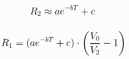 这可能并不明显,但选择正确的R 1非常重要。它需要了解热敏电阻的电阻与待测温度之间的关系。我们可以从重写分压器方程开始: