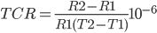 当TCR为ppm /℃时,R1在室温下为欧姆,R2为工作温度下的电阻,单位为欧姆,T1为室温,单位为℃,T2为工作温度,单位为℃。通常代替TCR,使用α。